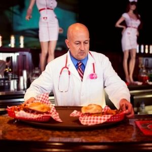 El Heart Attack Grill de Las Vegas, más que exótico, pasa a la categoría de bizarro (su nombre lo dice todo). Situado sobre la Fremont Street, en el downtown de la ciudad, es un restaurante que maneja el concepto de un hospital: las camareras juegan el rol de "enfermeras" y están vestidas como tal; y los clientes, al ingresar, deben vestirse con un atuendo típico de los “pacientes” (reciben un tradicional camisón de sanatorio). A la vez, deben marcar sus pedidos en órdenes que simulan “prescripciones” o “recetas médicas”. El menú incluye hamburguesas "simples", "dobles", "triples" y "cuádruples", que van de los 230 a los 910 gr., papas fritas sin límite, cerveza, tequila y otras bebidas cola. Pero, también está el irónicamente llamado “Octuple Bypass”, que contiene ocho hamburguesas que representan 20 mil calorías.