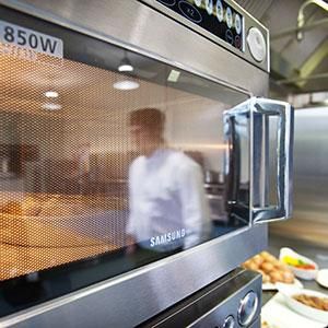 • Microondas de 20 l. con interior cerámico: potentes, fáciles de limpiar y con un programa de descongelación rápida. Gracias a la característica Rapid Defrost de Samsung, se pueden descongelar los alimentos rápidamente y de manera uniforme, devolviéndoles toda la frescura y sabor originales. Por su parte, el sistema de triple distribución TDS asegura que los alimentos, desde una pizza a un vaso de leche caliente, estén perfectamente preparados, gracias a sus tres puntos de distribución de microondas.