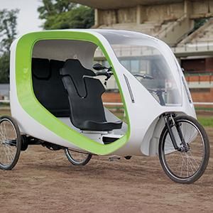 Se trata de un triciclo eléctricamente asistido de un exquisito diseño vanguardista, que puede transportar a dos pasajeros además del conductor. Su concepto urbano es similar al de otros "eTrikes" (así se denominan este tipo de vehículos eléctricos), como los que en la actualidad pueden verse recorriendo los principales atractivos turísticos de varias ciudades europeas como París, Berlín y Barcelona.