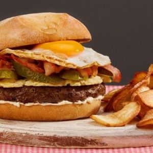 Además de sus contundentes hamburguesas en todas sus variedades, también se ofrecen burritos, ensaladas y nuggets de pollo, entre otras sugerencias. A las que se suman las especialidades dulces, como el cheesecake de frutos rojos o la chocotorta.
